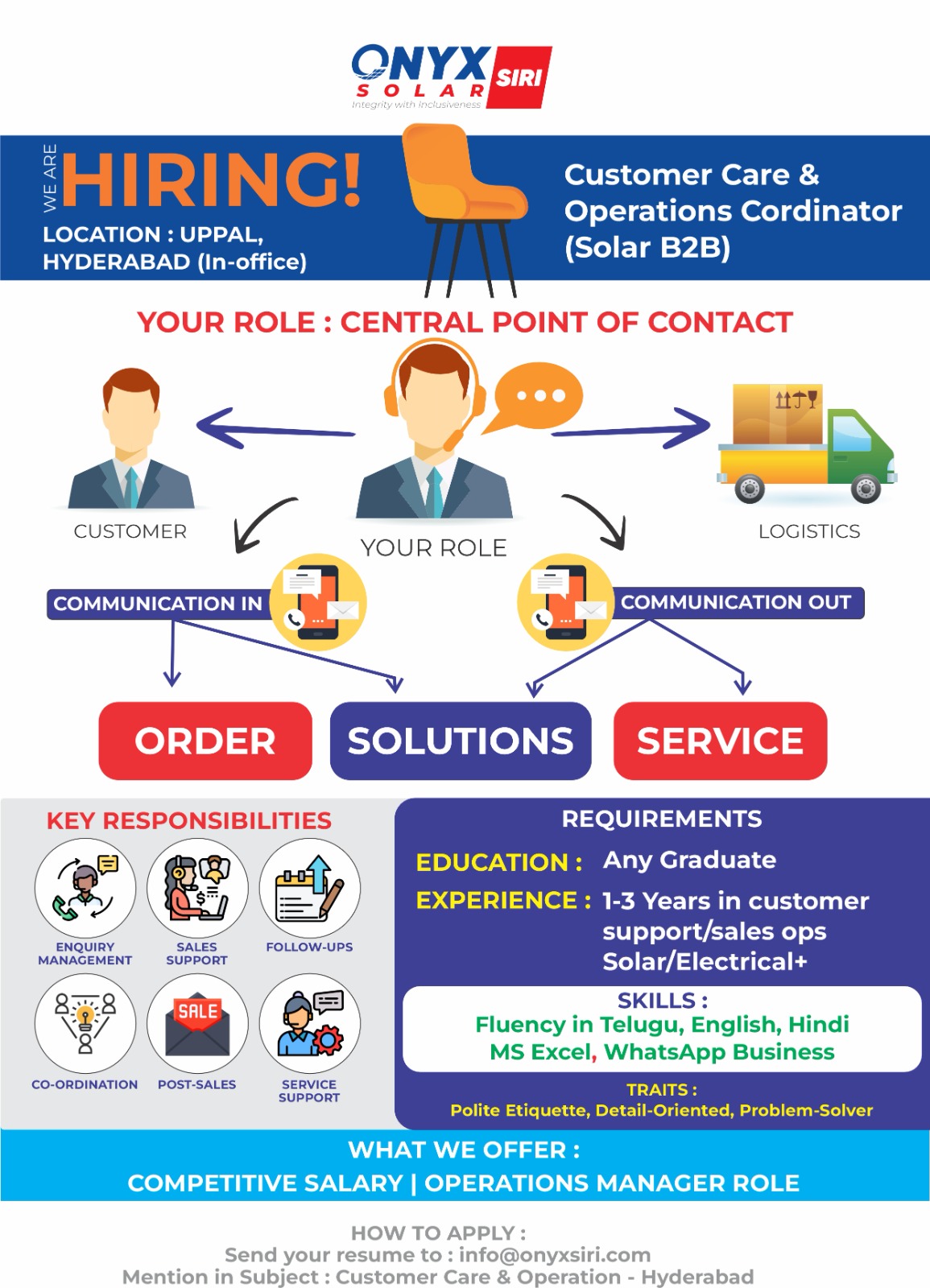 Customer Care & Operations Coordinator (Solar B2B) – Hyderabad